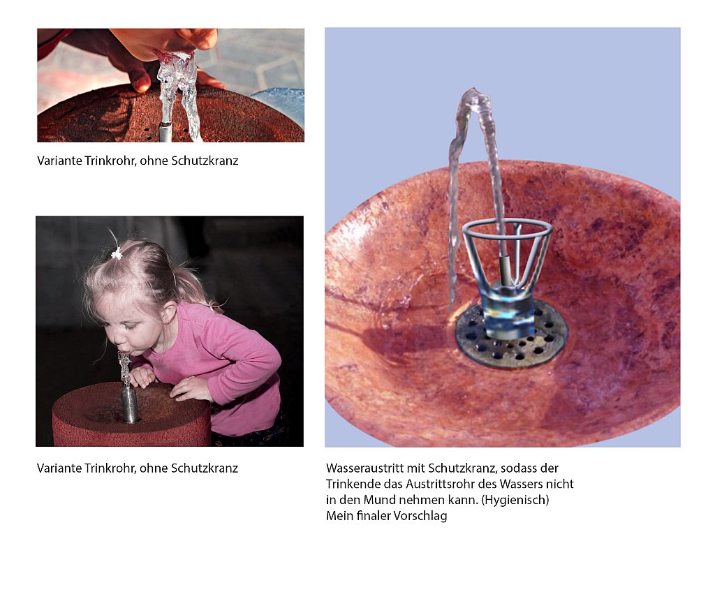 Die unterschiedlichen Höhen der Installation ermöglichen Kindern und Menschen aller Körpergrößen ihre Trinkhöhe selbst