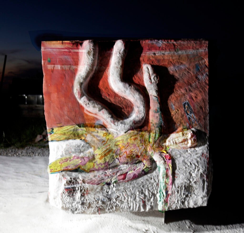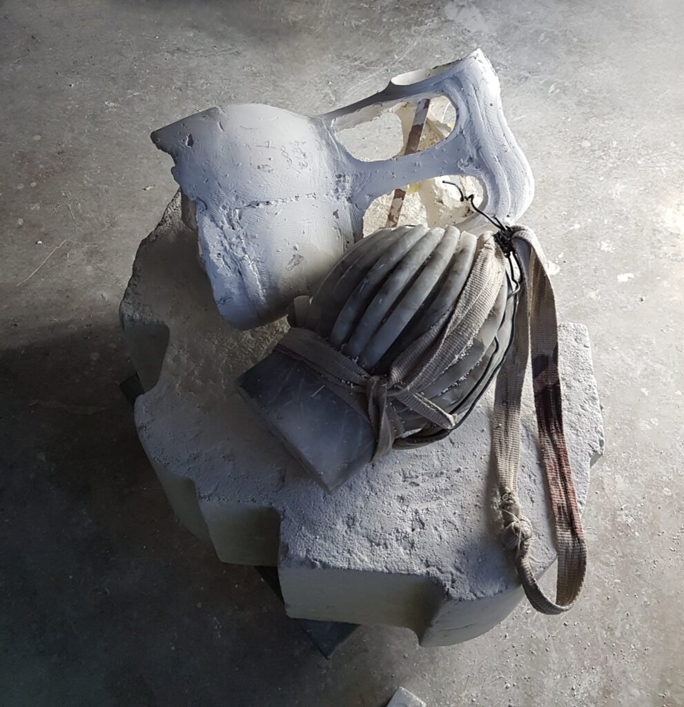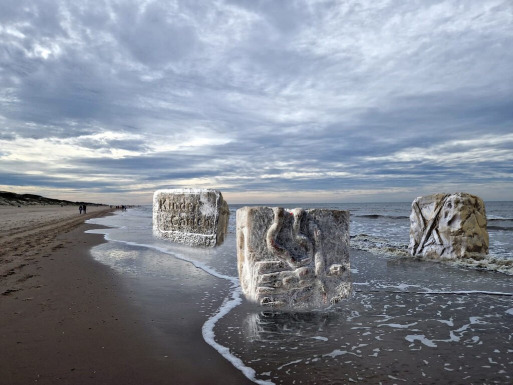Weltweit gibt es einige Versuche In kompaktes Salzgestein Skulpturen zu meißeln. Nicht der Reiz alleine ein ungewöhnliches Material einmal zu benutzen, hat mich bewogen, dieses Material zu verwenden, sondern das Prozesshafte, die beiden Skulpturen sollen in das Wasser eines Meeresufer abgesetzt werden, so dass diese vom Wellenschlag wieder übernommen werden.