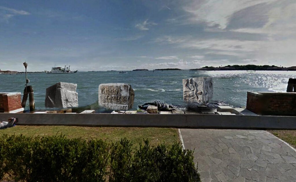 Die vier Seiten des kubischen Blocks von ca. 160 x 130 x 150 cm. Gewicht ca. 6 Tonnen, haben den Text, “Kindergarten of the earth“, eingemeißelt. Auf jeder Seite des Blockes ist ein Wort zu finden (Kindergarten-of-the-earth). Mit diesen Worten soll, mit dem in vielen Sprachen übernommenen deutschen Wort Kindergarten, auf die frühe Entstehung dieser Blöcke hingewiesen werden.