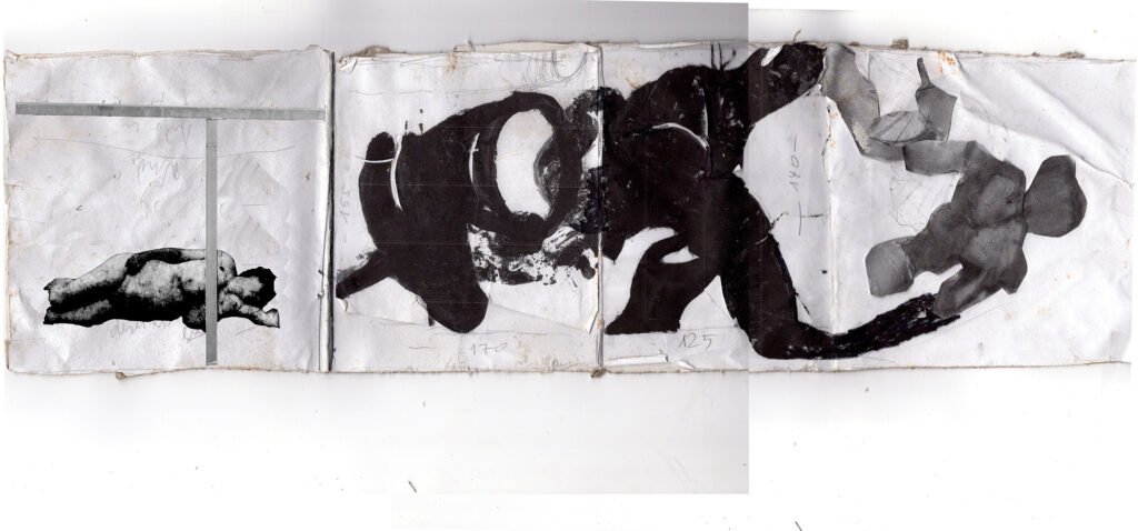 Heterogenität ist das Konzept. Jede der 4 Seiten hat eine eigene stilistische Autonomie. Seite 1 “ Eine Straße in Amsterdam“. Seite 2. „Dead man with a Python“. Seite 3. „Abstrakte Komposition“. Seite 4. „Rückenakt, nach einer Zeichnung von Joseph Beuys”.