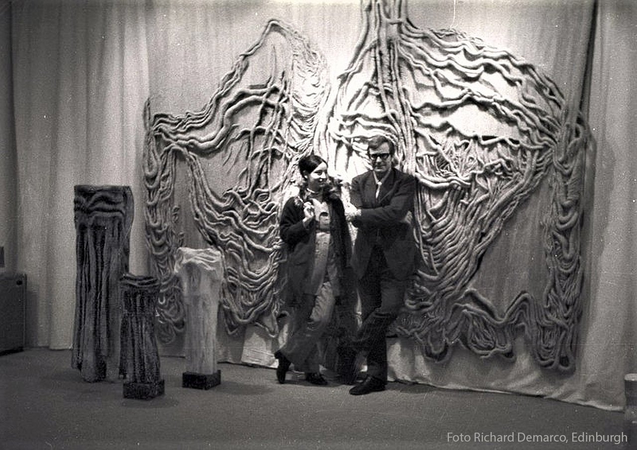 Ausstellung mit Textil, Zeichnung, Skulptur und getrennter Fotoausstellung