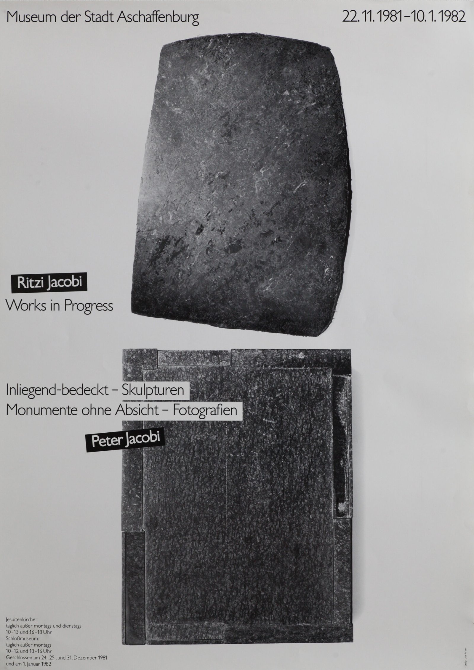 Benutzte Zeichnungen, Ritzi und Peter Jacobi,ca. 1980er-Jahre ca. 160 x 110 cm, Kohle und Bleistift auf Papier. Zeichnungen in Originalgröße im Webrahmen hinter der Kette eingesetzt; dient der Weberin als Vorlage.
