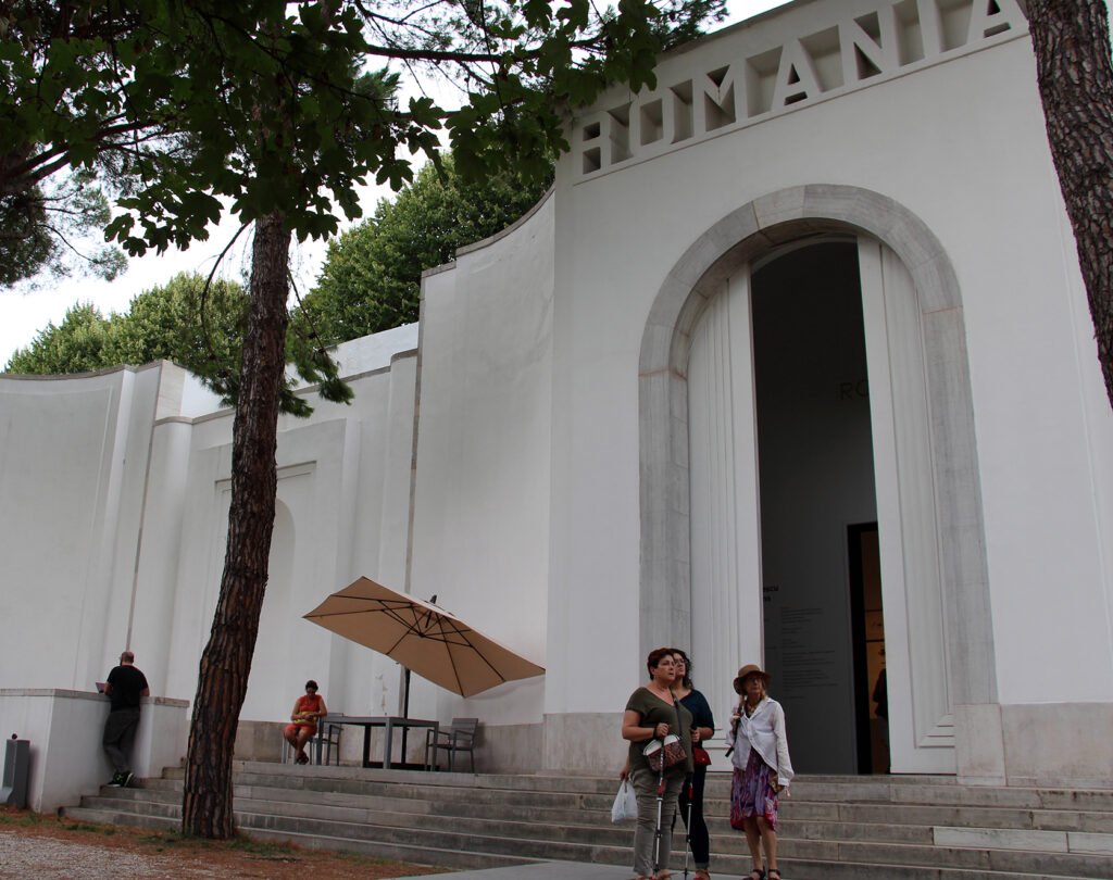 Die italienische Säule als Teil der Ausstellung im Stadtraum