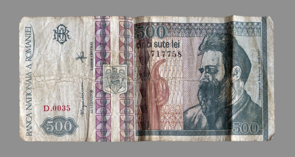 um 1993 wurde der 500 lei Schein mit Brancusi’s Skulpturen und Portait bestückt