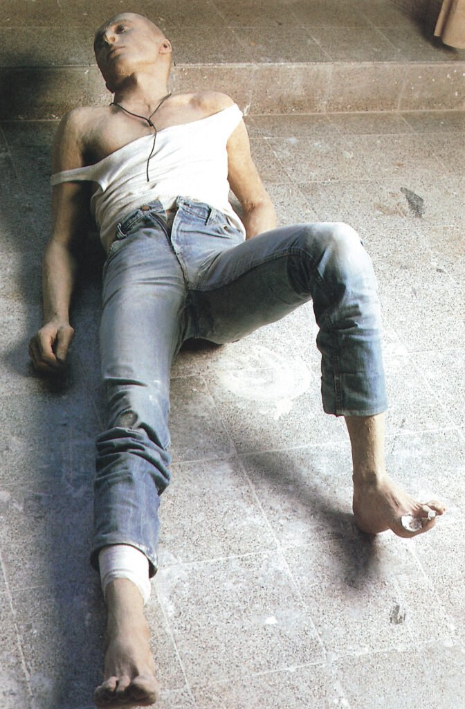 Anlässlich der Wende hatten wir den Vorschlag eines Studenten, einen Trabbi auf einem Gerüst nach oben zu hieven. Die inhaltlichen Begründungen waren sehr unterschiedlich, eigentlich war die Geste an sich, den Trabbi verpackt hochzuheben der Inhalt der Skulptur. Klaus Heider und ich schauen besorgt auf das Aufhängen des Trabbis durch einen Kran, und hoffen dass das Teil hält…